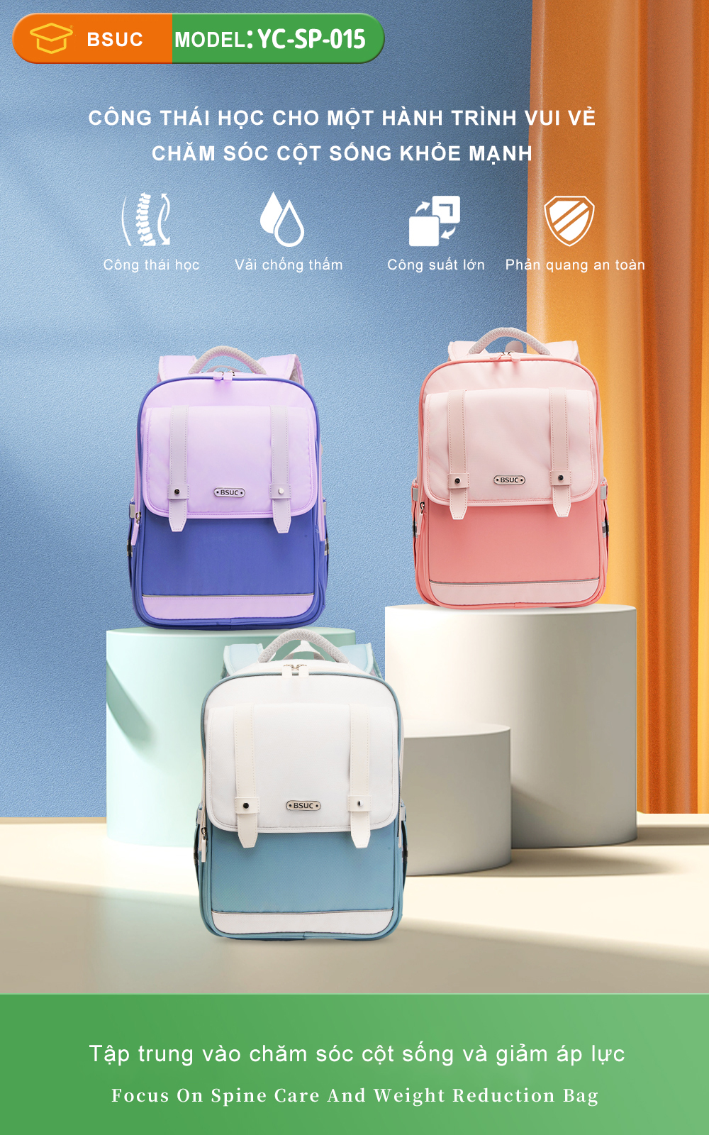 Trang chủ » Balo Chống Gù Cho Bé » Balo chống gù lưng BSUC cho bé YC-SP-015