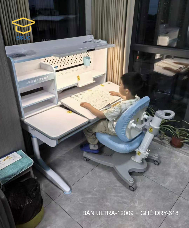 Sau khi tham khảo nhiều nơi, tôi quyết định mua bàn học thông minh Ultra-12009 của BSUC. Chất lượng sản phẩm vượt mong đợi: khung thép chắc chắn, bề mặt bàn chống lóa, rất dễ vệ sinh. Ghế DRY-618 ôm sát lưng, giúp con ngồi đúng tư thế. Đặc biệt là đèn phổ quang ánh sáng tự nhiên, không hại mắt. Bé nhà tôi rất thích và học tập hứng thú hơn hẳn.