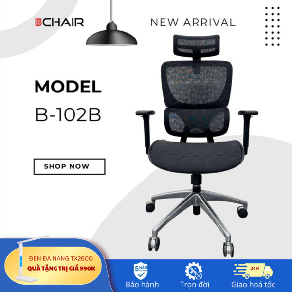 Tôi chọn B-102B vì thiết kế đẹp và khung ghế chắc chắn. Phần lưng ôm sát, lưới thoáng khí, không bị nóng lưng. Ghế dễ điều chỉnh theo vóc dáng. Rất hài lòng với lựa chọn này!